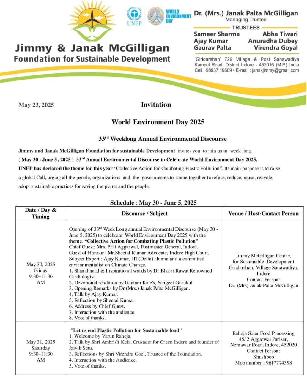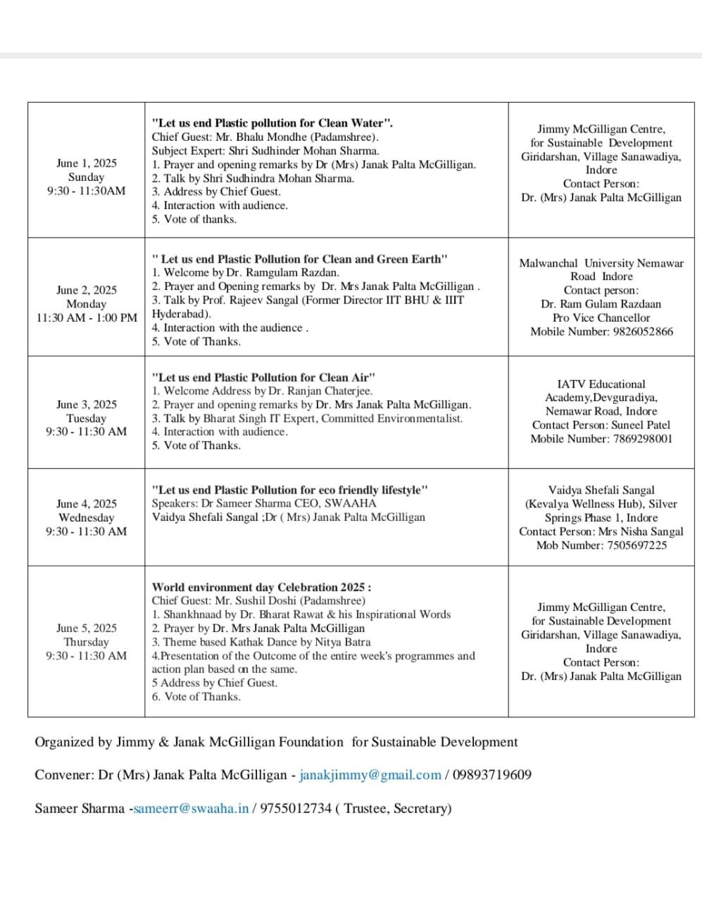 Jimmy and Janak Mcgilligan Foundation for Sustainable Development organised the week long dialogue on environment theme ‘Collective Action for Combating Plastic Pollution’ given by UNEP for the year 2025.